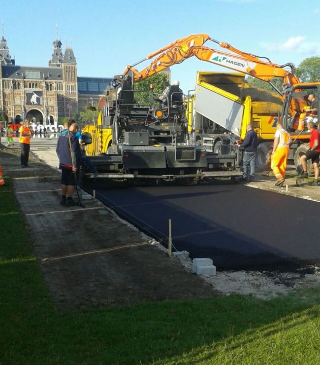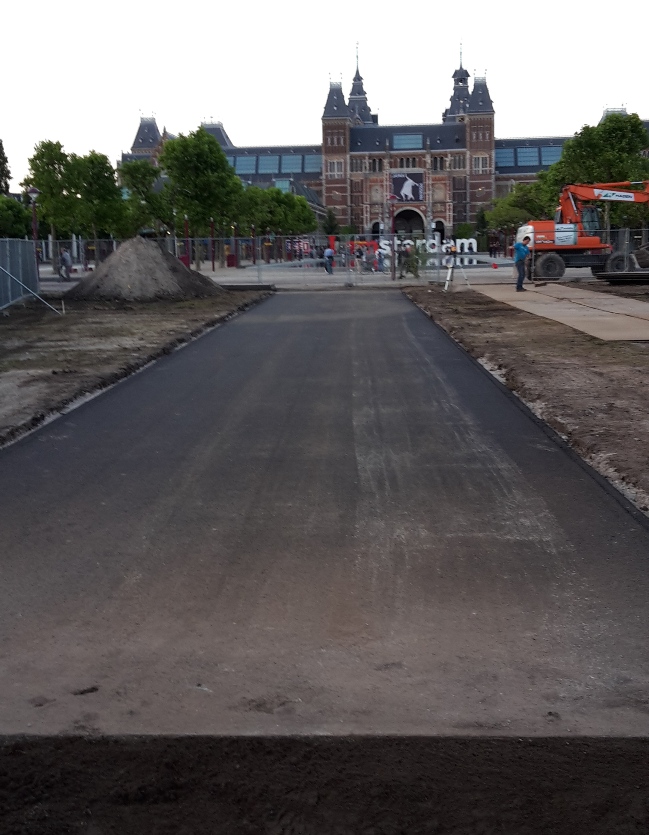 Een goedgekeurde asfalt aanloop voor het Rijksmuseum.