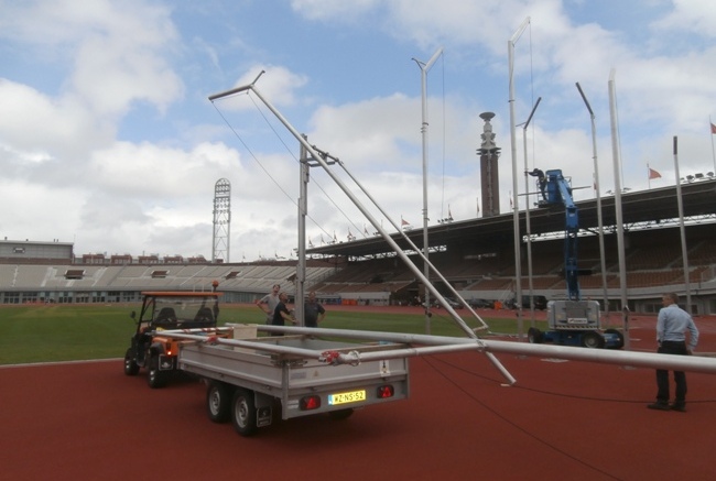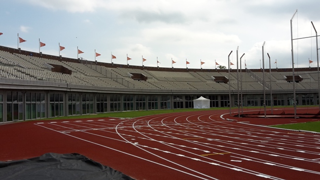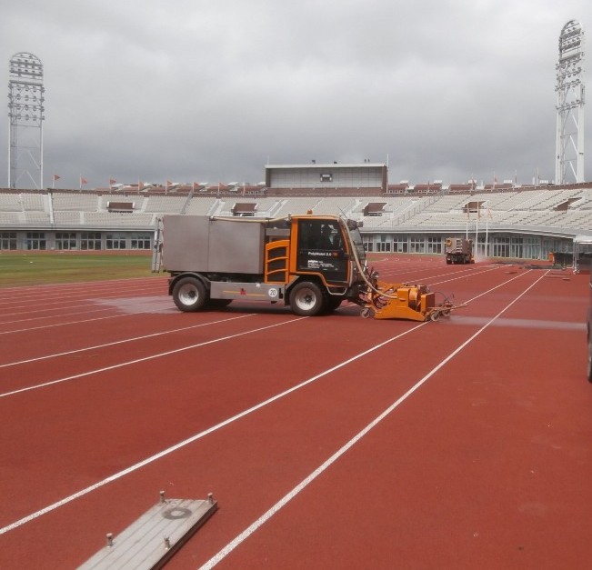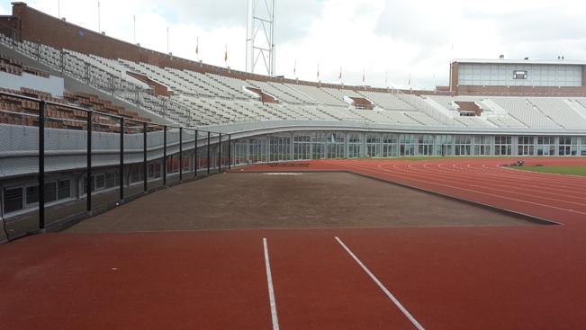 De baan herbelijnen en aanpassen aan de nieuwe voorschriften van de IAAF.