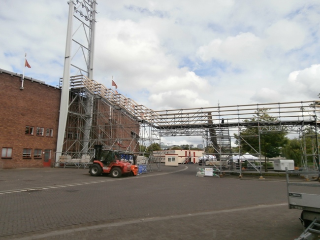 De slingerkooi wordt opgebouwd en later op onze aanwijzing nog aangepast om een beter gebruik mogelijk te maken.