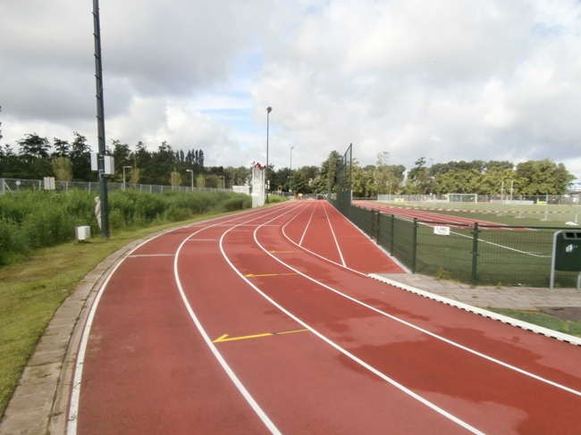 Capaciteitsvergroting door extra sprintlanen tussen rondbaan en kunstgrasveld.