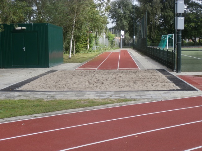 De aanlopen voor het verspringen en hink-stap-springen zijn gedraaid en aan de achterzijde van het veld komen te liggen.