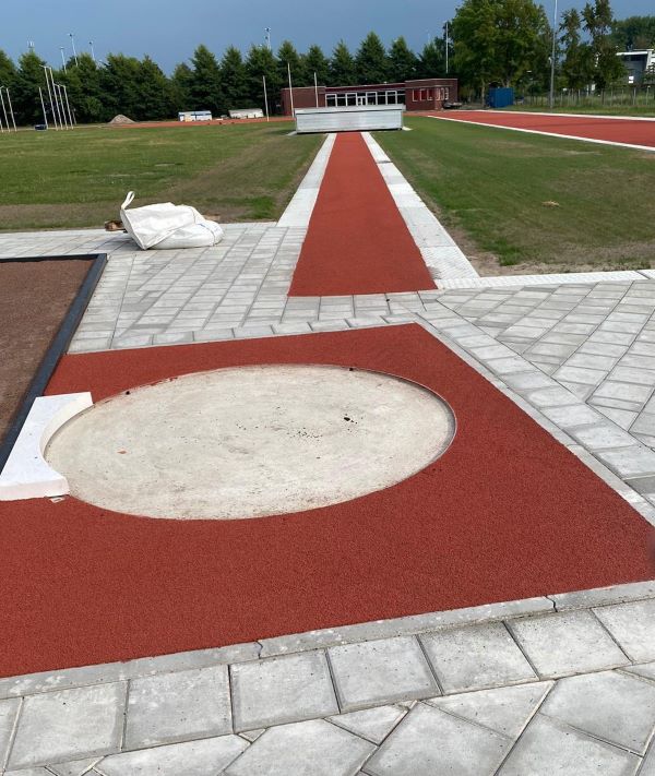 Gezamenlijke opdracht van gemeente en vereniging. De lijngoot, het asfalt en de kunststof toplaag zijn vervangen. Het verspringen is aangepast naar een driebaans aanloop voor beter gebruik voor trainingen en mindervaliden. De discuskooi is vervangen door een slingerkooi en het klassikale kogelstoten is aangepast.